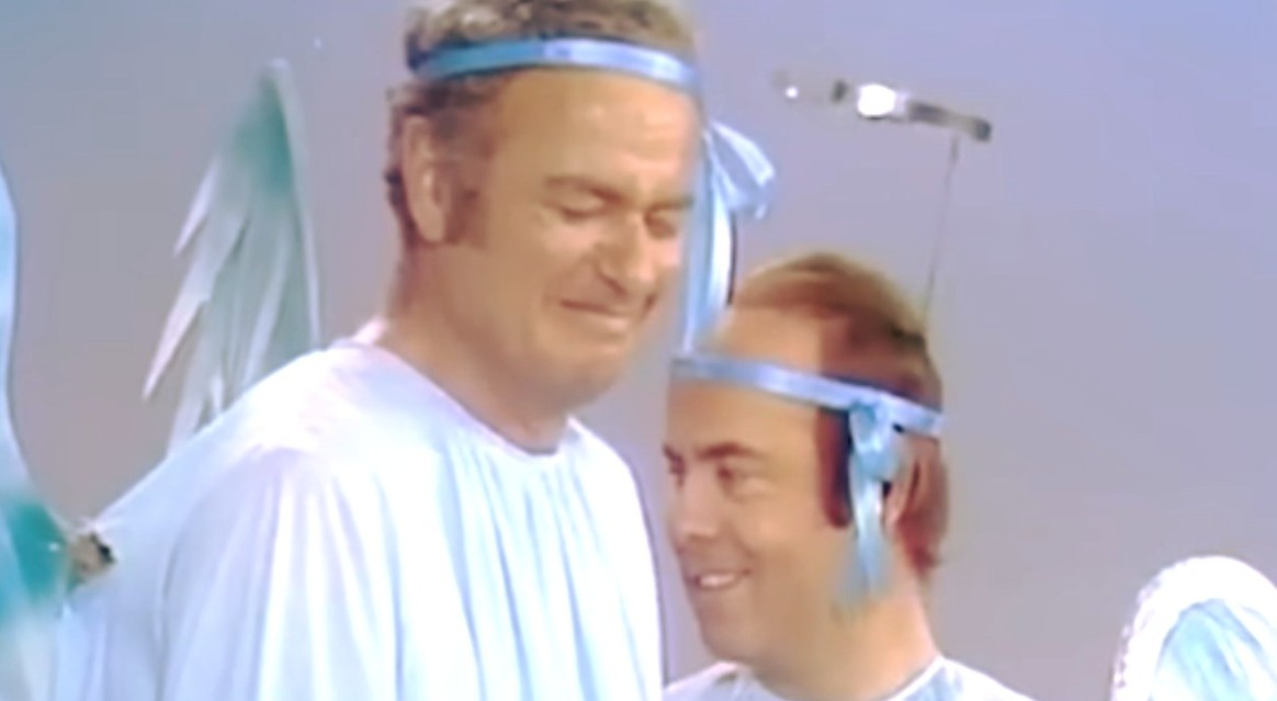 Tim Conway’s “rookie angel” routine leaves Harvey Korman completely undone, doubled over in unstoppable laughter
